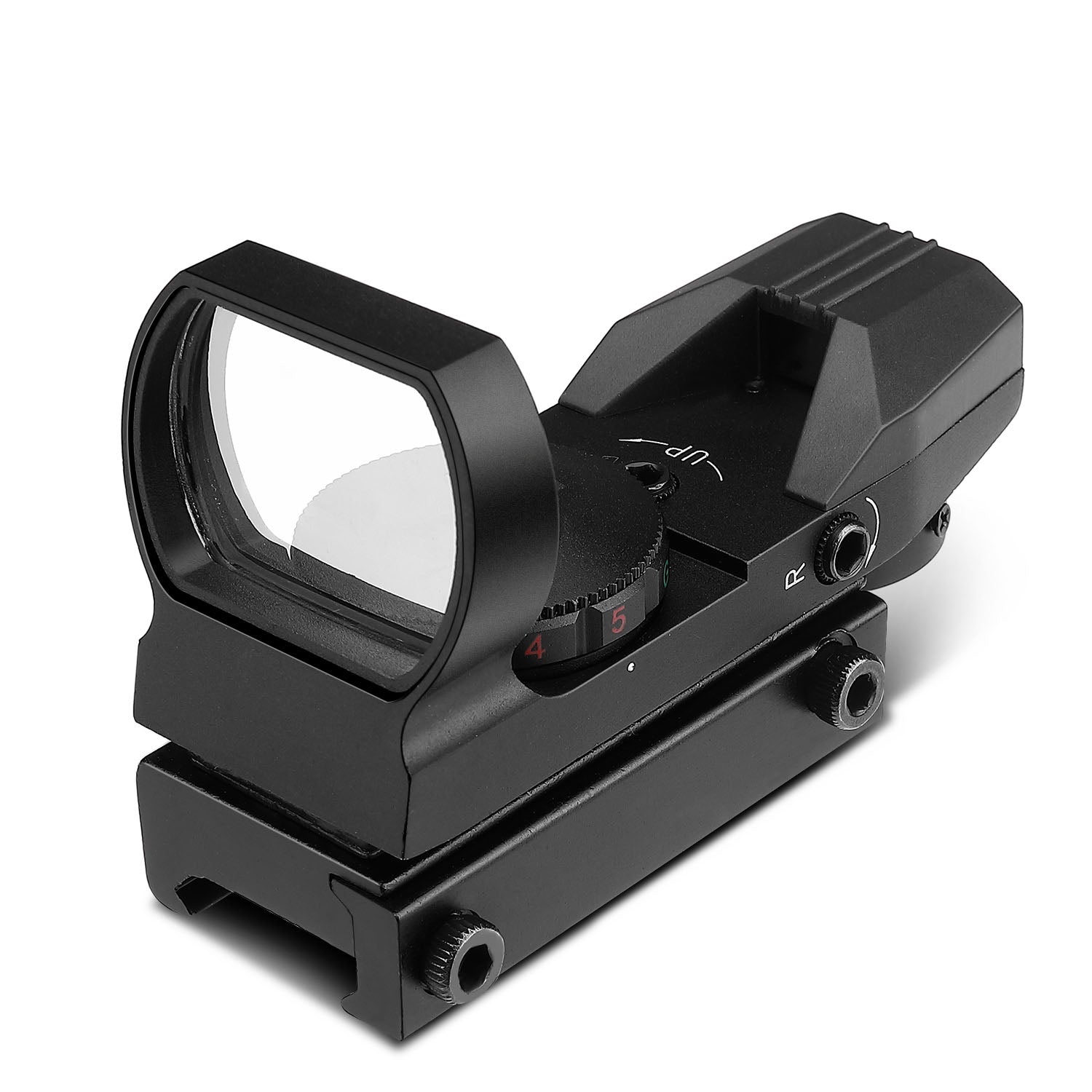 - 4 reticle patterns - circle-dot-cross reticle, 3 MOA dot reticle, cross-dot reticle, circle-dot reticle