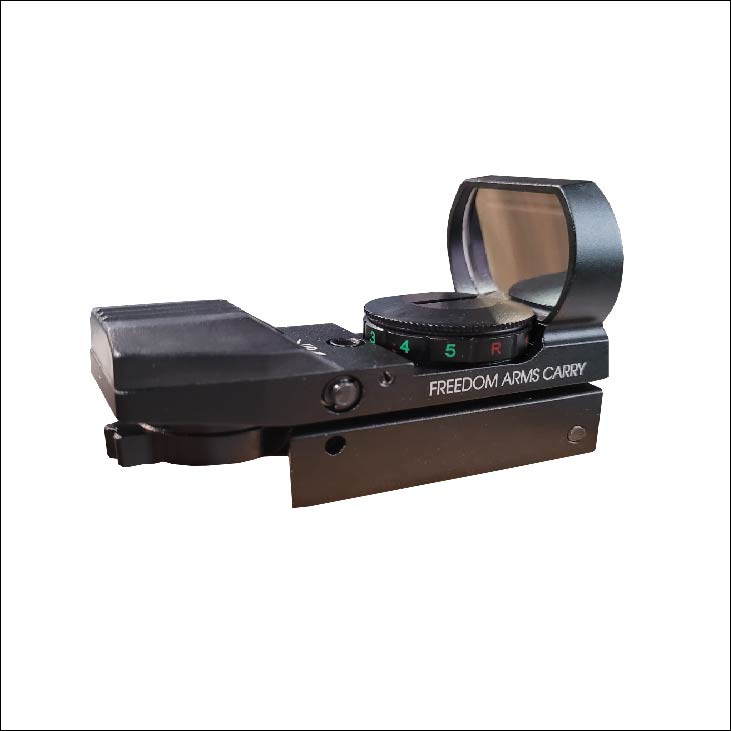 Freedom Arms Carry offers a new level of durability and performance to the smaller design of a open-reflex red dot sight. Its aircraft grade aluminum housing ensures corrosion resistance under the harshest environments, and a new upgraded point-source emitter provides increased brightness in day or night conditions. The molded glass aspheric lens has upgraded high performance coatings for superior light transmittance and zero distortion giving you fast, responsive target acquisition and accuracy. Includes a rugged glass protective shroud for transport or storage.