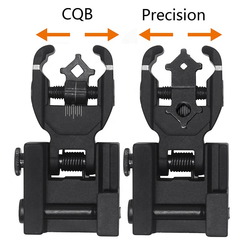- Rear sight features a double aperture, a large aperture for rapid target acquisition for close-range, and a small aperture for long-range precision shots.