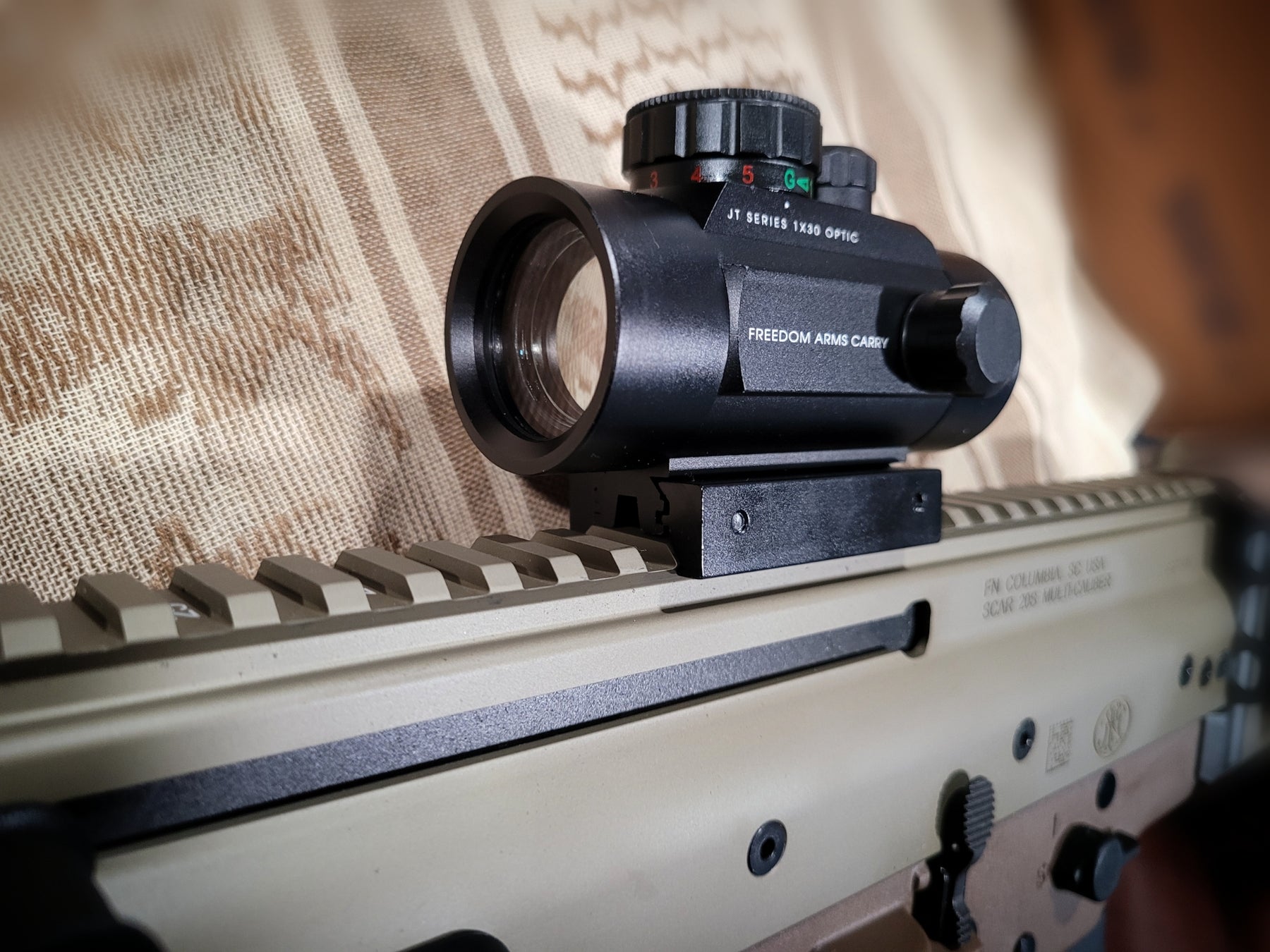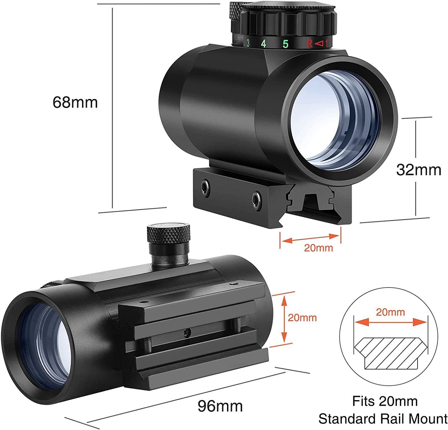 The 1x30 Red / Green Dot Sight from F.A.C. provides fast target acquisition, pinpoint accuracy and a wide field of view. It is the perfect illuminated sight for handguns, rimfire rifles, shotguns, pistols, blackpowders and crossbows. This dot sight has a user-selectable red or green 5 MOA reticle and a finger adjustable rheostat allowing variable reticle brightness control. Anti-reflective coating, unlimited eye relief and multi-coated optics create a sight with optimum performance at an affordable price. It includes a CR2032 lithium battery and scope covers.